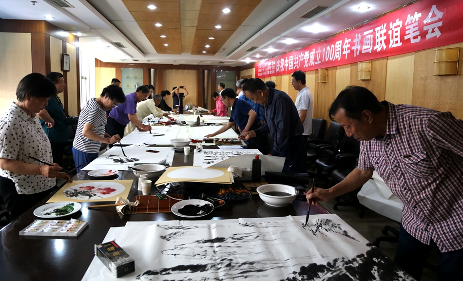 为庆祝中国共产党成立100周年,回顾党的奋斗历程,歌颂美好新时代,助力公司企业文化建设。6月24日,上海佳允实业有限公司、烟台市老年书画研究会、烟台市老干部志愿者协会共同举办“庆祝中国共产党成立100周年联谊书画笔会”。本次活动共有18位县处级退休老干部书画家参加。