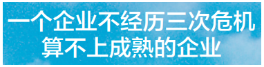 “一个企业不经历至少三次危机,都算不上成熟的企业。”杨恒坤认为,危机不可怕,关键看企业如何处理危机,如何应对危机。一个企业在整个行业都在增长时增长不算本事,在行业低谷期别人不增长而自己还保持稳定增长才算真本事;一年做到增长不算本事,做到年年持续增长才算真本事。“市场总是有机会,也有挑战,危机即是机遇,不断寻找新的增量市场,抓住机会持续成长,战胜挑战不断精进,是一个企业的必由之路。”